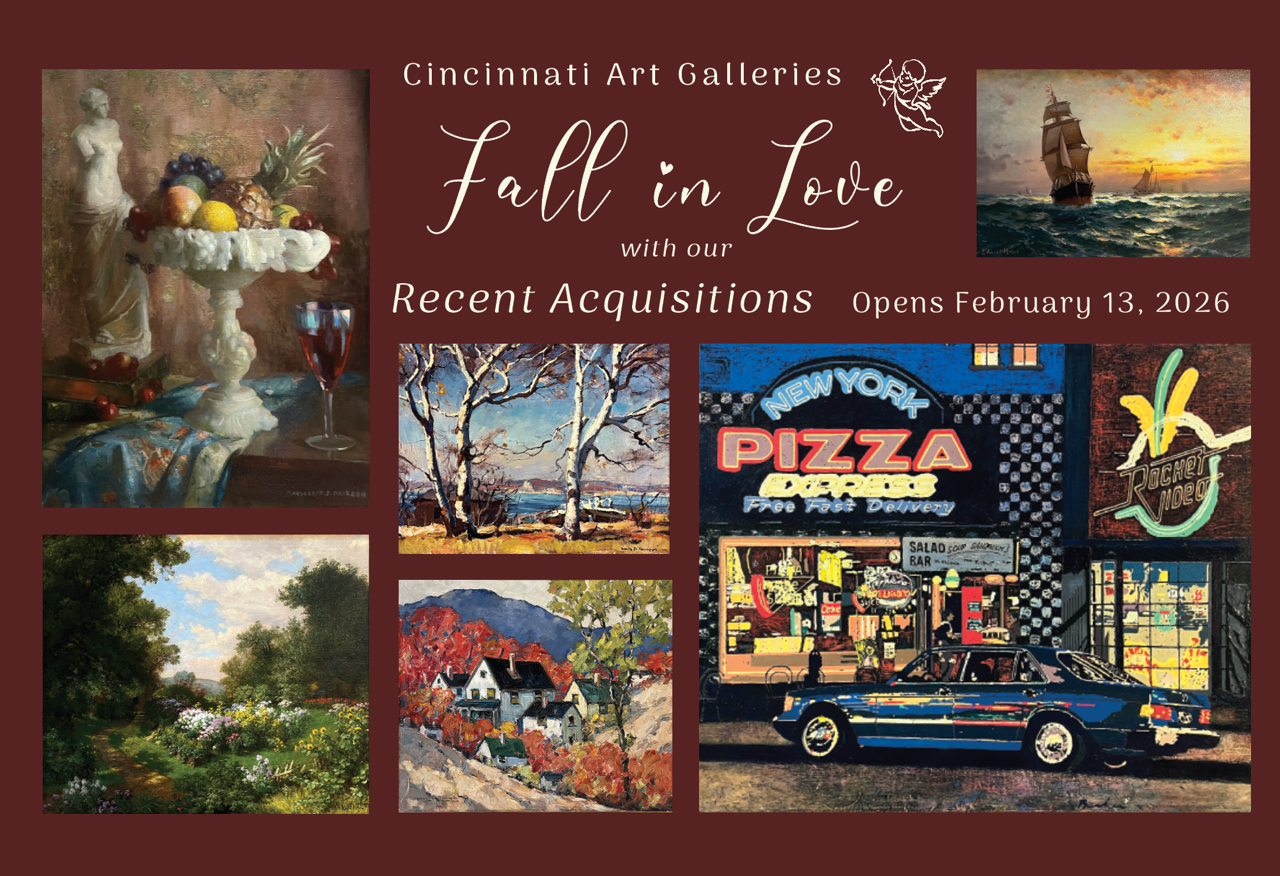 Cincinnati Art Galleries invites you to view our upcoming exhibition featuring over 100 American and European paintings from the late nineteenth century to the modern era. The exhibition will open Friday, February 13th, 2026 from 5:00-8:00 pm. Landscapes, cityscapes and marine scenes are presented alongside still lifes and figurative works. Featured artists include Willard Metcalf, Homer Dodge Martin, Henry Ward Ranger, Alexander Wyant, Edward Moran, Frederick Waugh, Emile Gruppe, Louis Ritman and others.