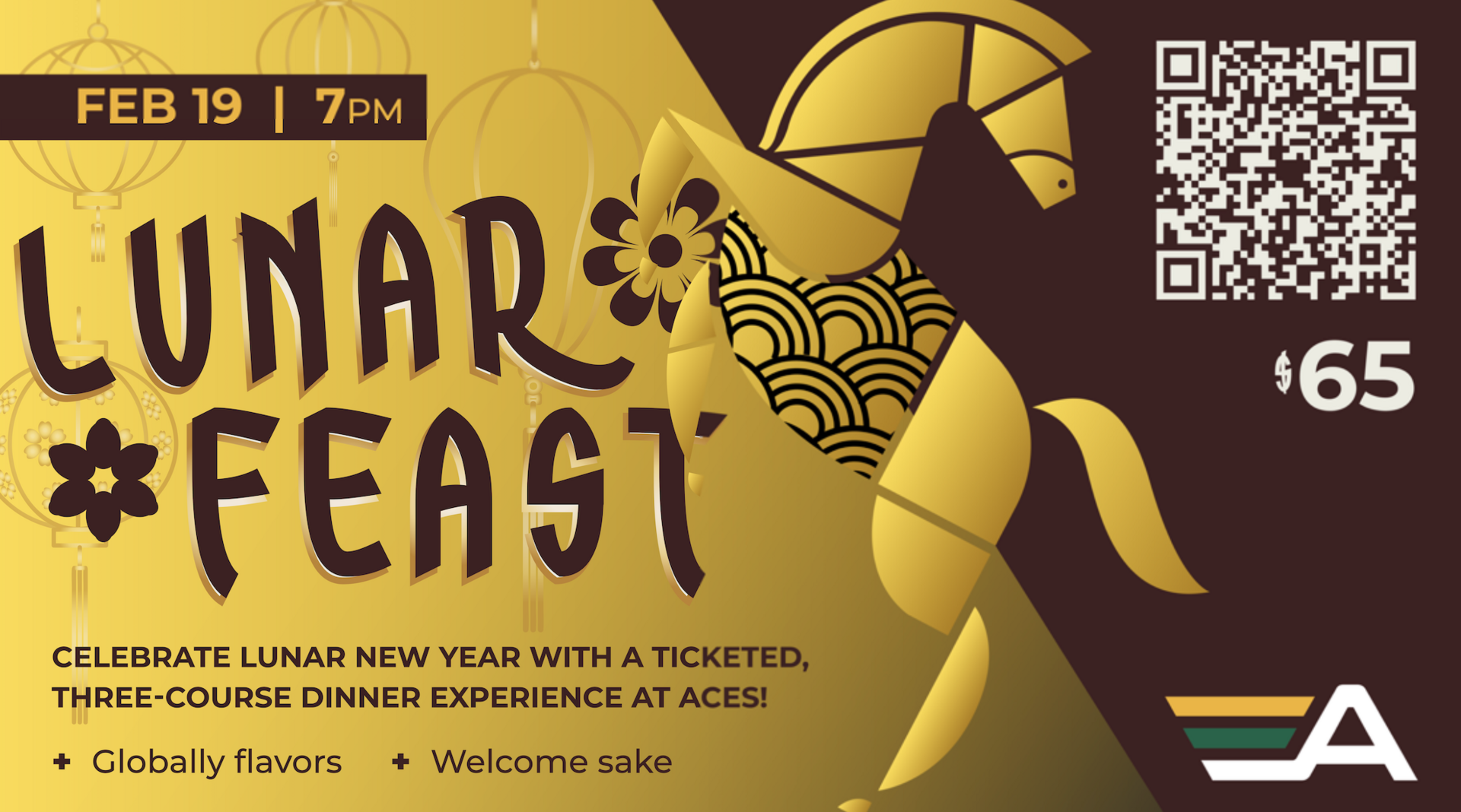 Celebrate Lunar New Year with LunarFEAST, a one-night, ticketed dining experience at Aces Bar & Grill. Guests will enjoy a chef-curated, three-course dinner inspired by bold Asian flavors, plus a welcome sake to kick off the evening.