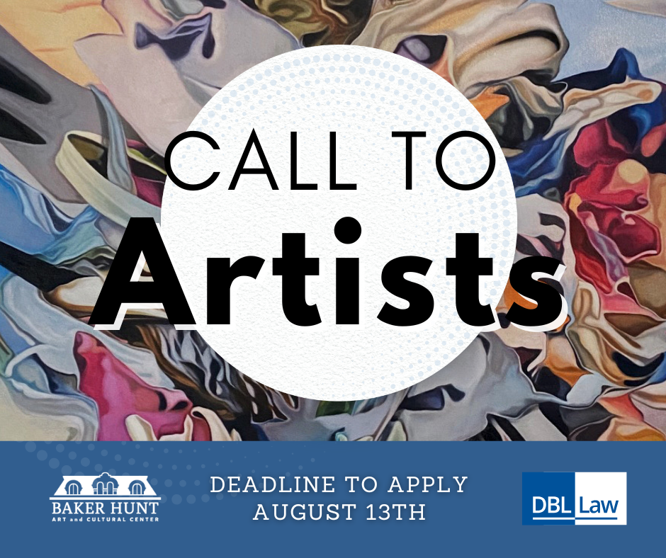 There is a call to regional 2D artists, now through August 13th, to display work at the upcoming Baker Hunt/DBL Art Show. Artists are asked to select a theme that best describes their work, and why. Themes are open to interpretation and include Local Scene, Portraits/Identity, Water, Animal, Flora, Contained, and Abstract.