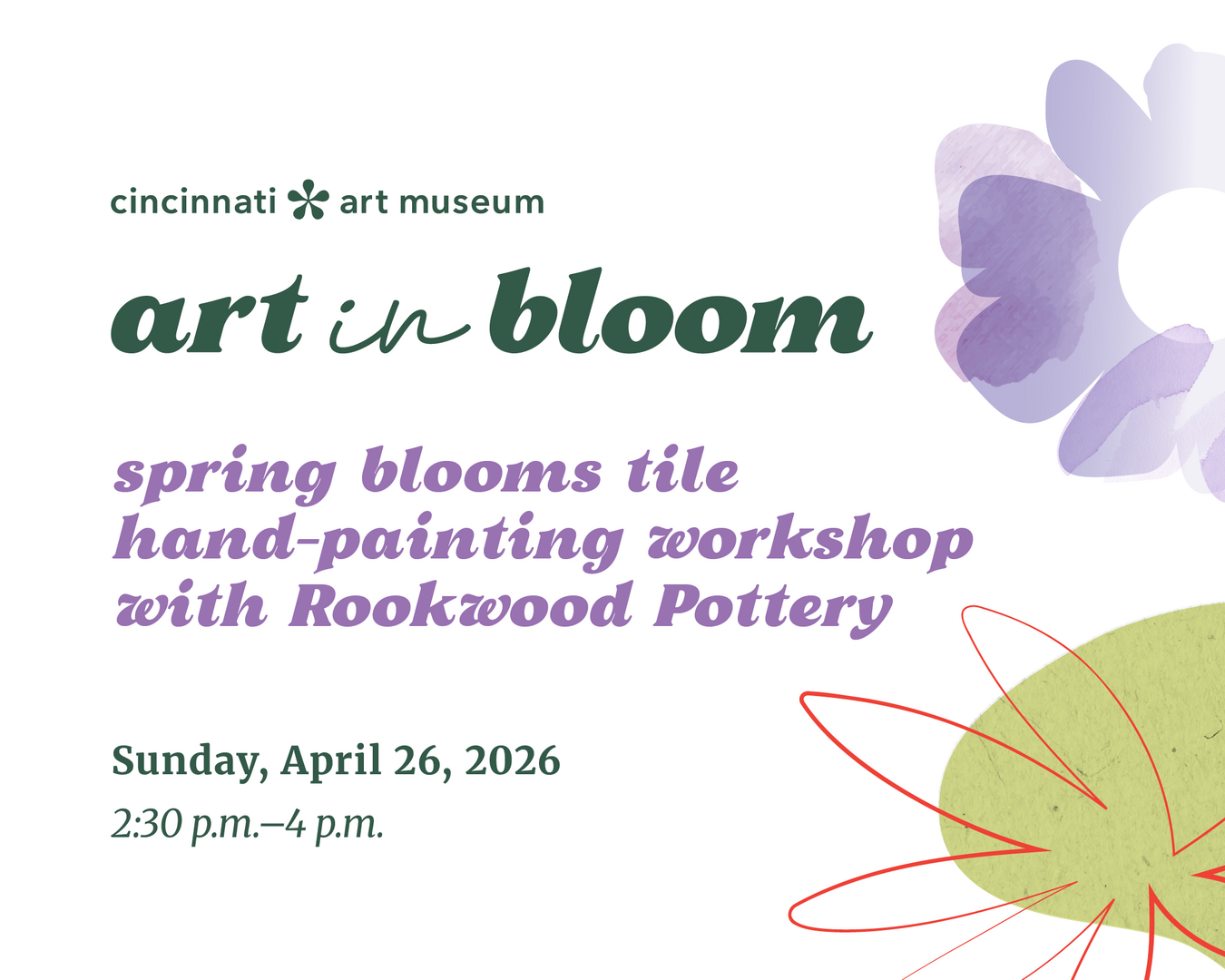 Experience the joy of hand-painting your own Rookwood tile in this artist-led workshop inspired by the color and renewal of spring. Choose from three exclusive floral designs—iris, rose, or peony—created only for this workshop to make your piece uniquely yours. All materials will be provided. Plus, enjoy a complimentary Behind the Scenes Tour at Rookwood, schedule online for available times and dates.