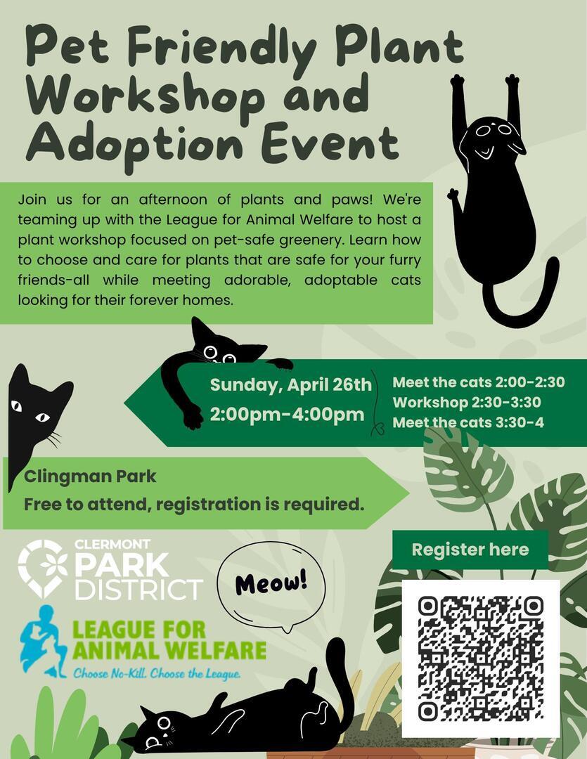 Join Clermont County Park District and League for Animal Welfare to explore best practices for being a plant and pet parent! We will discuss safe indoor and outdoor plants for your furry family members. Adoptable cats and dogs will be available to view 30 minutes before and 30 minutes after the program. Registration is required.