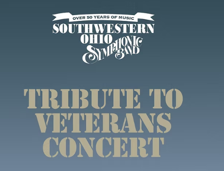The Southwestern Ohio Symphonic Band, led by Dan Nichols and guest conductor Mitch Hardy, presents “Tribute to Veterans” concert. Selections include Battle Hymn of the Republic, America the Beautiful, and Cincinnatus March. Rodgers and Hammerstein’s South Pacific will be performed.
