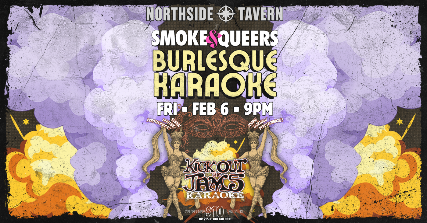 Smoke & Queers team up with Kick Out The Jams Karaoke to bring you an outrageously unique night where Karaoke and Burlesque fantastically collide for a crazy good time!