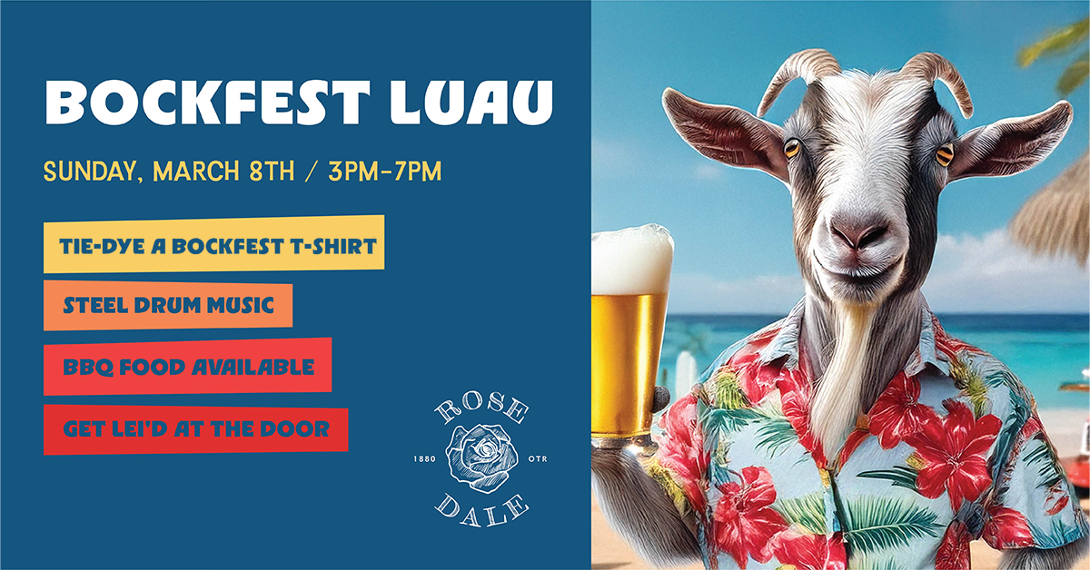 Rosedale is bringing the beach to OTRβs backyard with a tropical twist on the traditional Bockfest festival. βοΈπ Join us Sunday, March 8th, from 3pm - 7pm for a luau-style party full of island vibes and bock beer, of course.