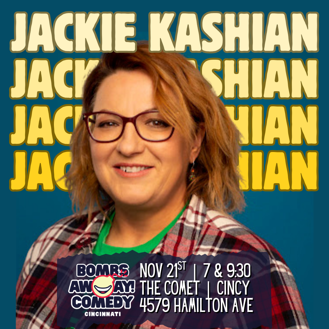 The New York Times says, “Kashian is the kind of comic that turns fury into eloquent goofiness.” A comic’s comic, she’s a favorite of fans across the globe and peers like Patton Oswalt, Maria Bamford, and Brian Regan who regularly bring Jackie to open for them when she’s not headlining clubs and theaters herself for 45 weeks of the year.