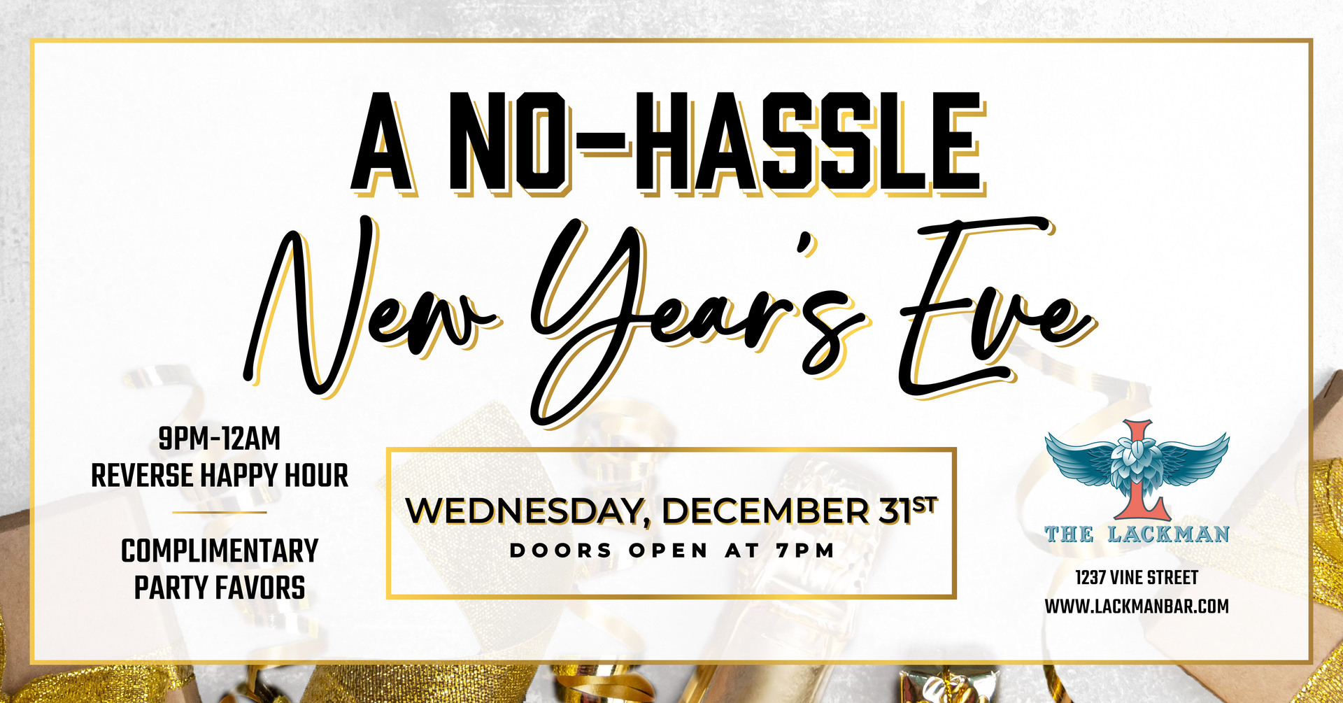 Ring in the new year without the chaos - just good drinks, good people, and a no-hassle night at The Lackman! ✨