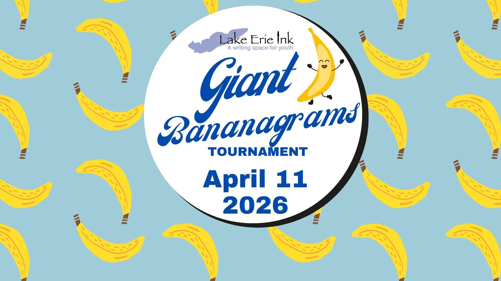 Get ready to Go Bananas for Lake Erie Ink! Join us for an afternoon of creative word play at the 13th annual GIANT Bananagrams Tournament at Cleveland Heights High School on Saturday, April 11th, 2026.