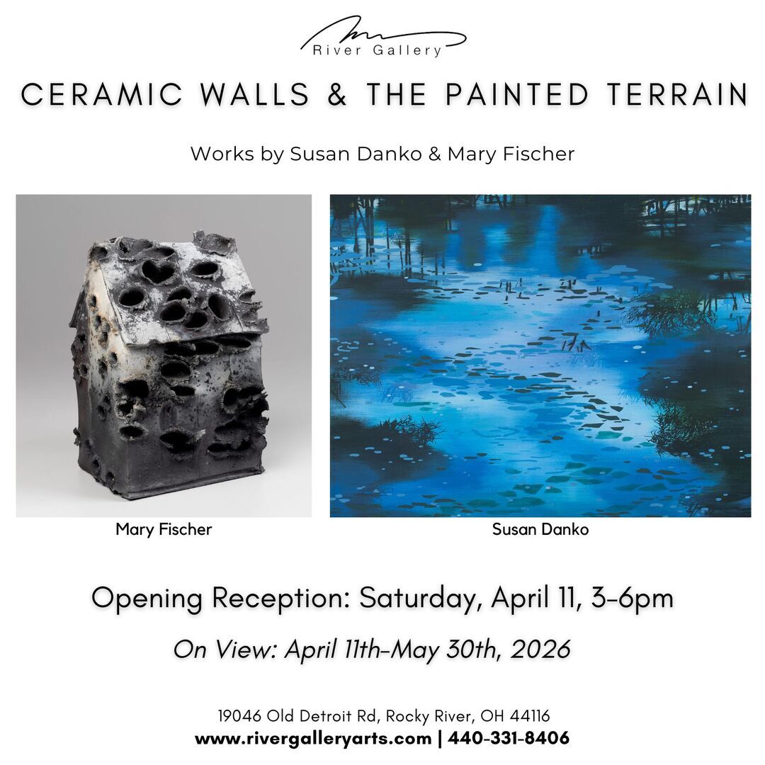 River Gallery is pleased to present Ceramic Walls & The Painted Terrain, a two-person exhibition featuring ceramic sculpture by Mary Fischer and landscape paintings by Susan Danko. The exhibition opens with a public reception on Saturday, April 11 from 3–6 PM and remains on view through May 30, 2026.