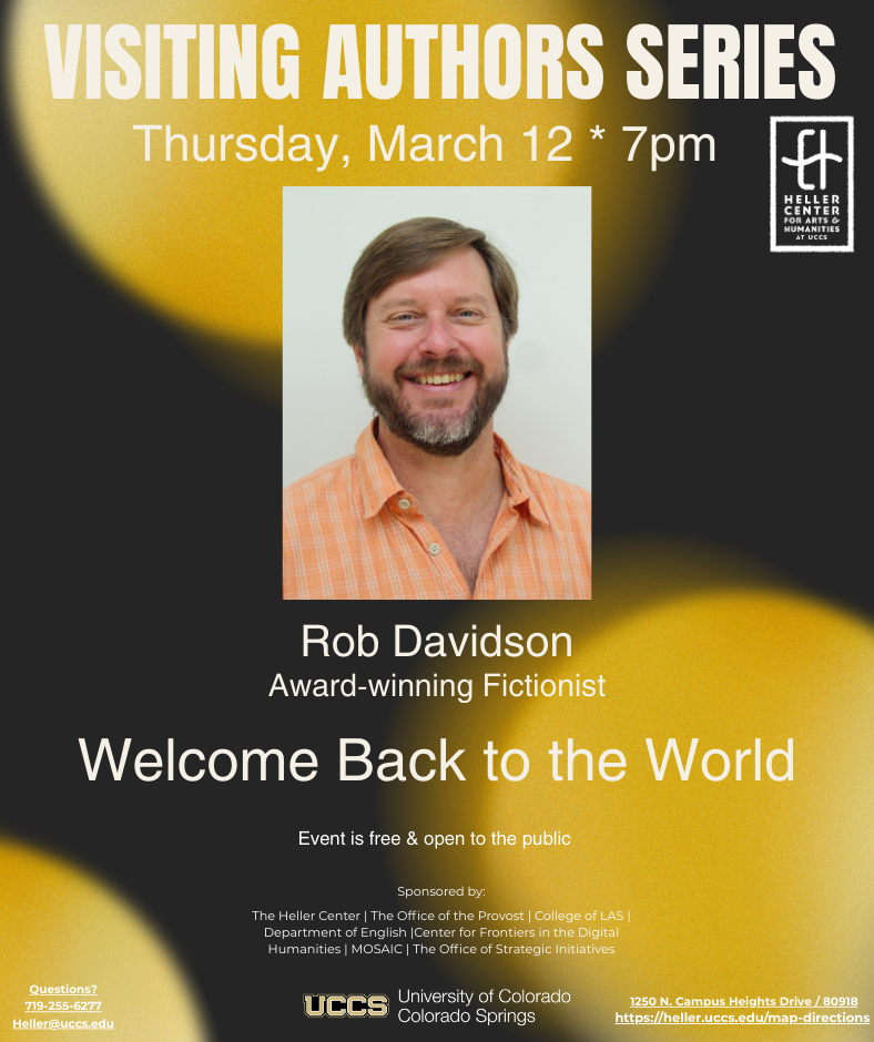 Davidson will offer a public reading both in-person at the Heller Center and online, engage in a Q&A session, and sign books at the Heller Center, located at 1250 North Campus Heights in Colorado Springs.