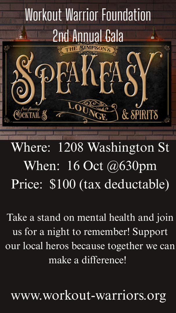 "Get ready, Columbia! The Workout Warriors Foundation is throwing the party of the year – our 2nd Annual Bootleggers & Bravery Gala, October 16th at 1208 Washington. Step back into the roaring ‘20s with live music, dancing, food, drinks, silent auction, and special guest Sheriff Lott. All proceeds help veterans, first responder and adaptive athletes reclaim their independence. Workout Warriors is a 5013c that provides grants to our warriors right here in the Midlands for fitness, wellness and nutrition coaching. So put on your best flapper dress or fedora, and let’s make history together! Tickets at Workout-Warriors.org – No one fights alone!"