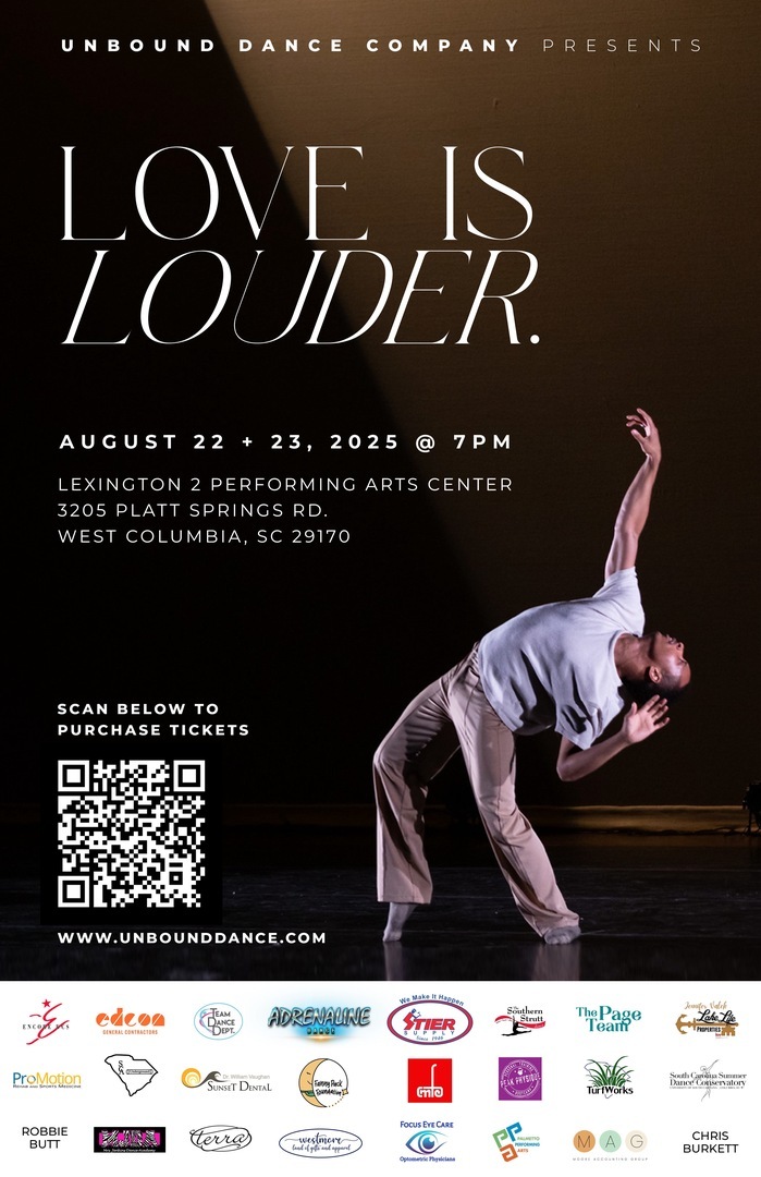 Unbound Dance Company is returning on August 22 + 23, 2025, presenting “Love Is Louder”—a show that explores the quiet battles we face in a noisy world. Through raw, emotional movement and compelling storytelling, this show reminds us that connection is strength, vulnerability is courage, and love—in all its forms—rises above the chaos. When the world is loud with fear and division, love is louder.