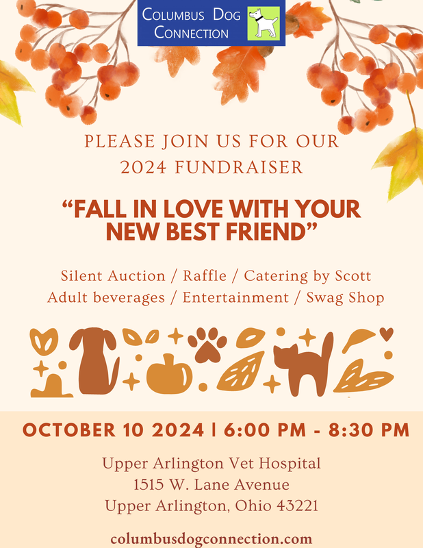 Columbus Dog Connection’s annual fundraiser "Fall In Love With Your New Best Friend" is set for October 10, 2024, from 6 p.m. – 8:30 p.m. at Upper Arlington Veterinary Hospital 1515 W. Lane Ave. This fun event was designed to raise much-needed funds for the organization’s year-round programs and services.