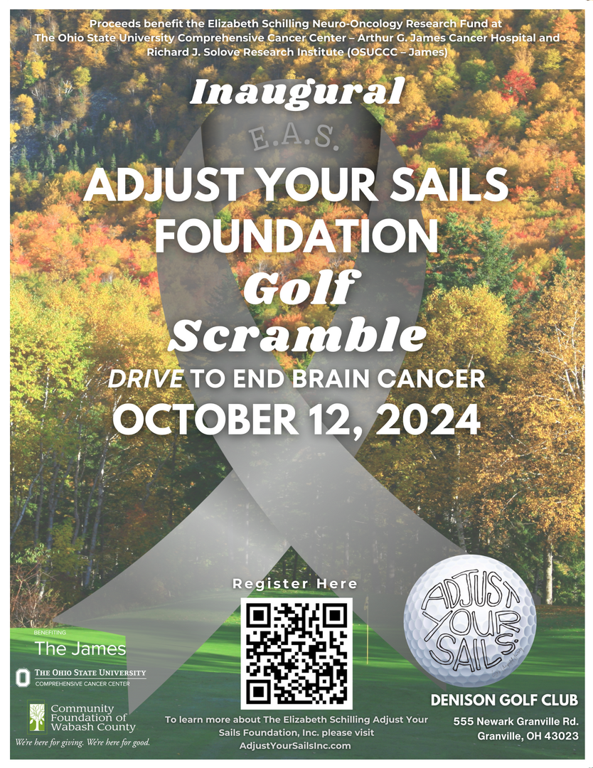 The Elizabeth Schilling Adjust Your Sails Foundation is excited to announce its inaugural golf outing, which will take place on October 12, 2024 at Denison Golf Course. The event raises funds for brain cancer research at Ohio State’s Comprehensive Cancer Center – James Cancer Hospital and Solove Research Institute.