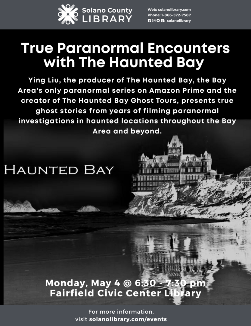 Ying Liu, the producer of The Haunted Bay, the Bay Area's only paranormal series on Amazon Prime and the creator of The Haunted Bay Ghost Tours, presents true ghost stories from years of filming paranormal investigations in haunted locations throughout the Bay Area and beyond.