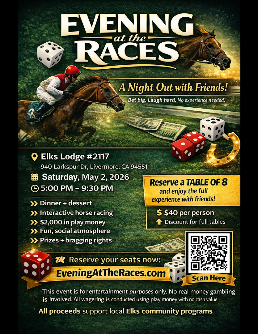 Of course, you won’t be able to win any actual money, but you can win bragging rights! We’ll even give prizes and winners certificates to every winning horse and the top three winners of script money to cement those bragging rights. Since proceeds support Elks’ projects; everyone will end the evening a winner.