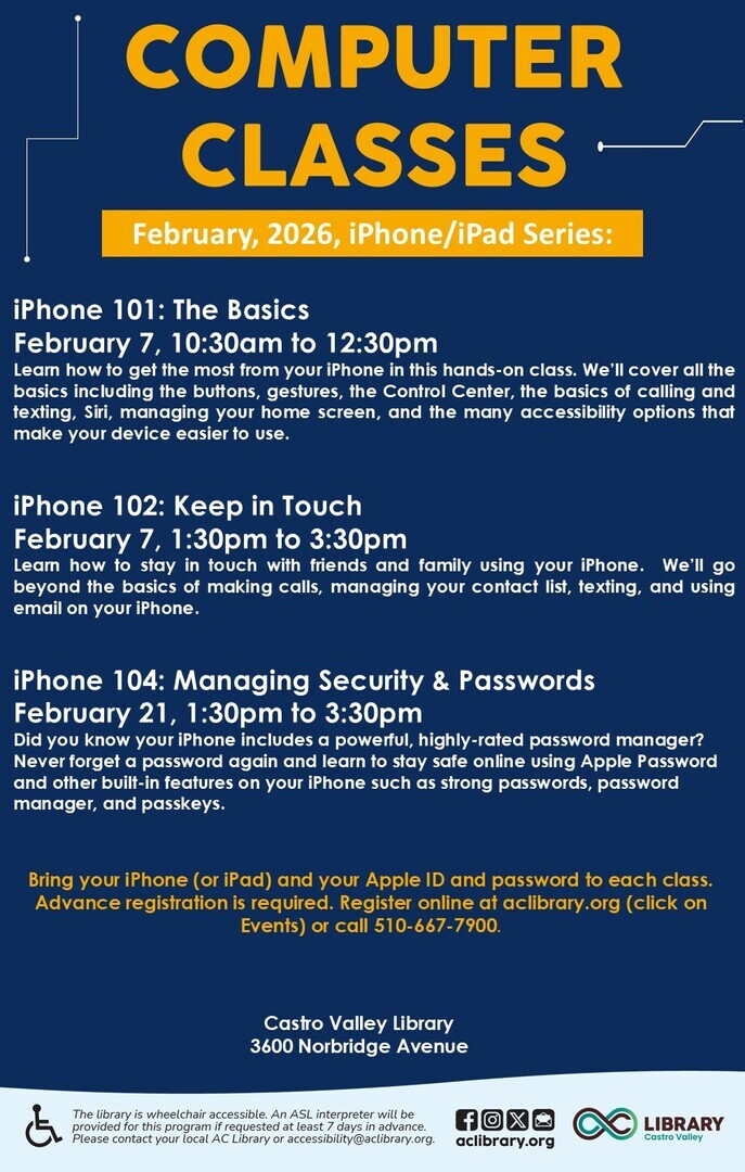 Advance registration is required. Register online at aclibrary.org (click on Events) or call 510-667-7900.
