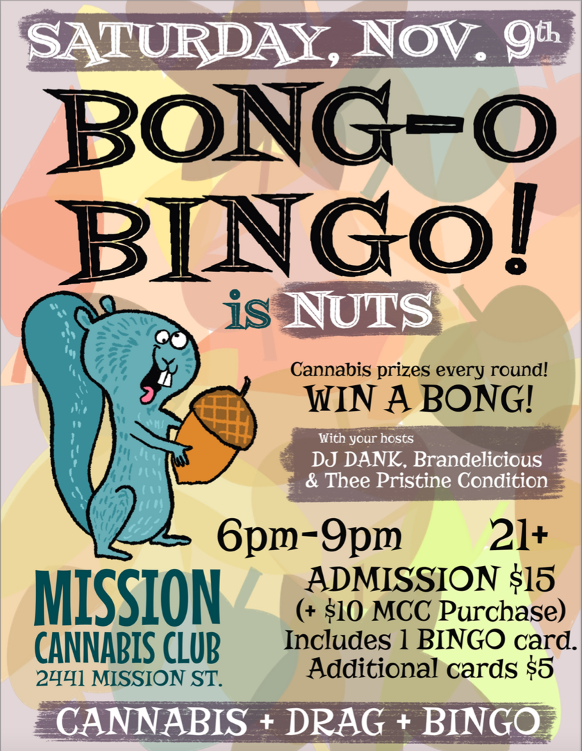 You are going to go nuts over BONG-O BINGO at Mission Cannabis Club on Saturday, November 9 from 6-9pm. $15/21+