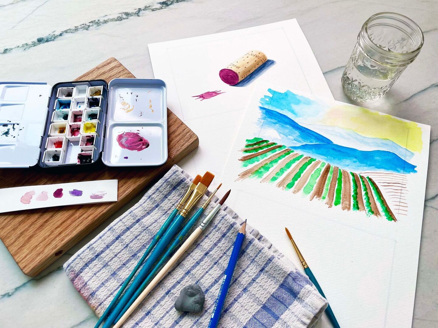 Each class day focuses on a different watercolor technique through demonstration and practice, followed by creating a final painting for the day using the technique learned. Each class builds on techniques. Attendees also learn about materials, color theory, and light/shadow.