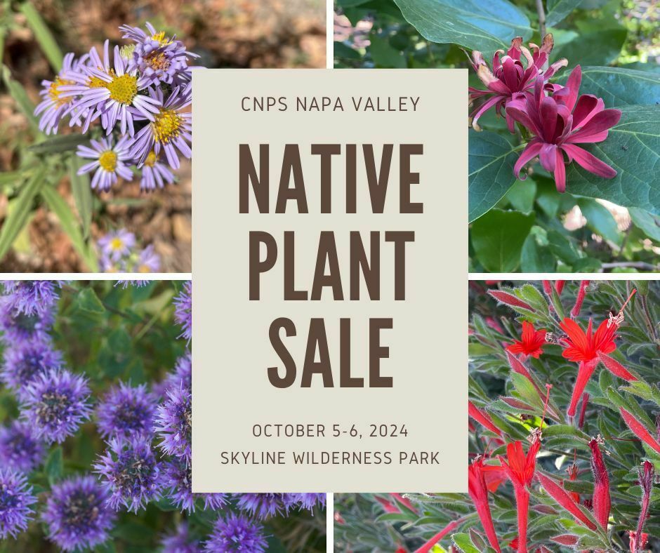 Join us in Napa's beautiful Skyline Wildnerness Park on October 5-6 for our Fall California Native Plant Sale! Over 1,000 hard-to-find native plants, representing more than 125 species, will be available for sale at Napa’s Skyline Wilderness Park and ready for planting in your garden. Whether your garden is large or small, in sun or shade, or even limited to pots on your deck or patio, you will help support native wildlife by planting our beautiful native flora. Plants such as California lilac, fuchsia, asters, coyote mint, yerba buena, salvias, manzanita, and more will be available to take home, turning your garden into your own national park by attracting native bees, butterflies, and birds.