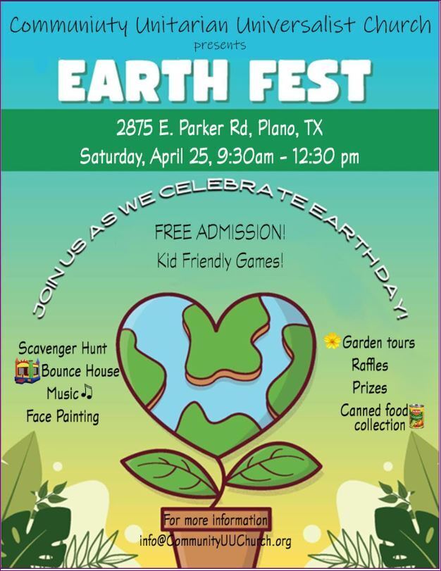 “We want to provide a safe, welcoming place where everyone can come laugh, play and put their hands in the dirt to celebrate Earth Day and lift up the efforts in our wider community toward food justice,” says the church’s minister, Rev. Dr. Aija Duelm. “Community UU and its partner organizations are called to support families who are struggling, so we created Earth Fest to share a little joy and love with the larger community.”