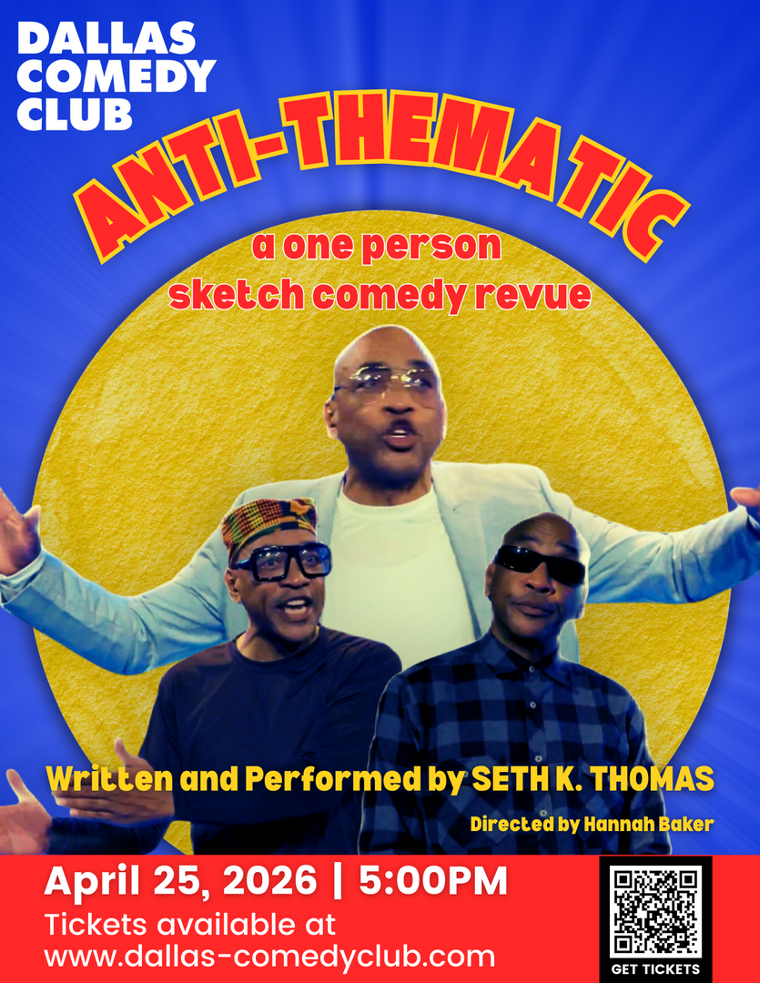 Anti-Thematic is a one-person sketch comedy rollercoaster written and performed by Seth K. Thomas. Instead of a single storyline, the show leaps through a series of sharp, offbeat vignettes — a rapid-fire parade of characters with huge opinions, questionable life choices, and unapologetic quirks. There’s no grand theme, no moral lesson, no tidy message...Anti-Thematic is rooted in the philosophy of HaHa over Rah-Rah and exists for one purpose: to make you laugh. If you walk out having learned something, that’s on you.