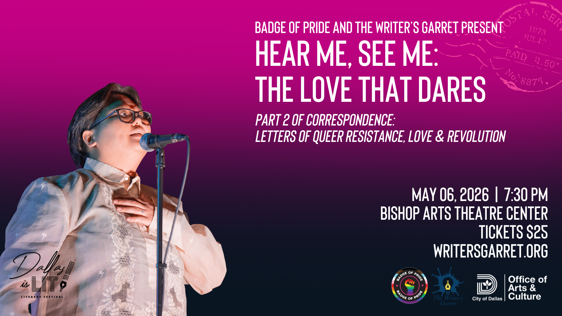 "Hear Me, See Me: The Love That Dares" opens the 2026 Dallas Is Lit! Literary Festival — a fitting place for an evening built on the radical power of queer words.