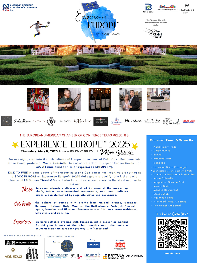 Experience an unforgettable evening with European art & soccer animation! Outbid your friends at the silent auction and take home a souvenir from this European journey. Don’t miss out!