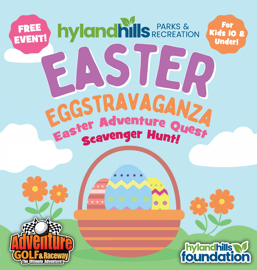 Join us for a fun twist on the traditional Easter Egg Hunt at Hyland Hills’ 2026 Easter Eggstravaganza on Saturday, April 4 from Noon-3pm at Adventure Golf & Raceway!