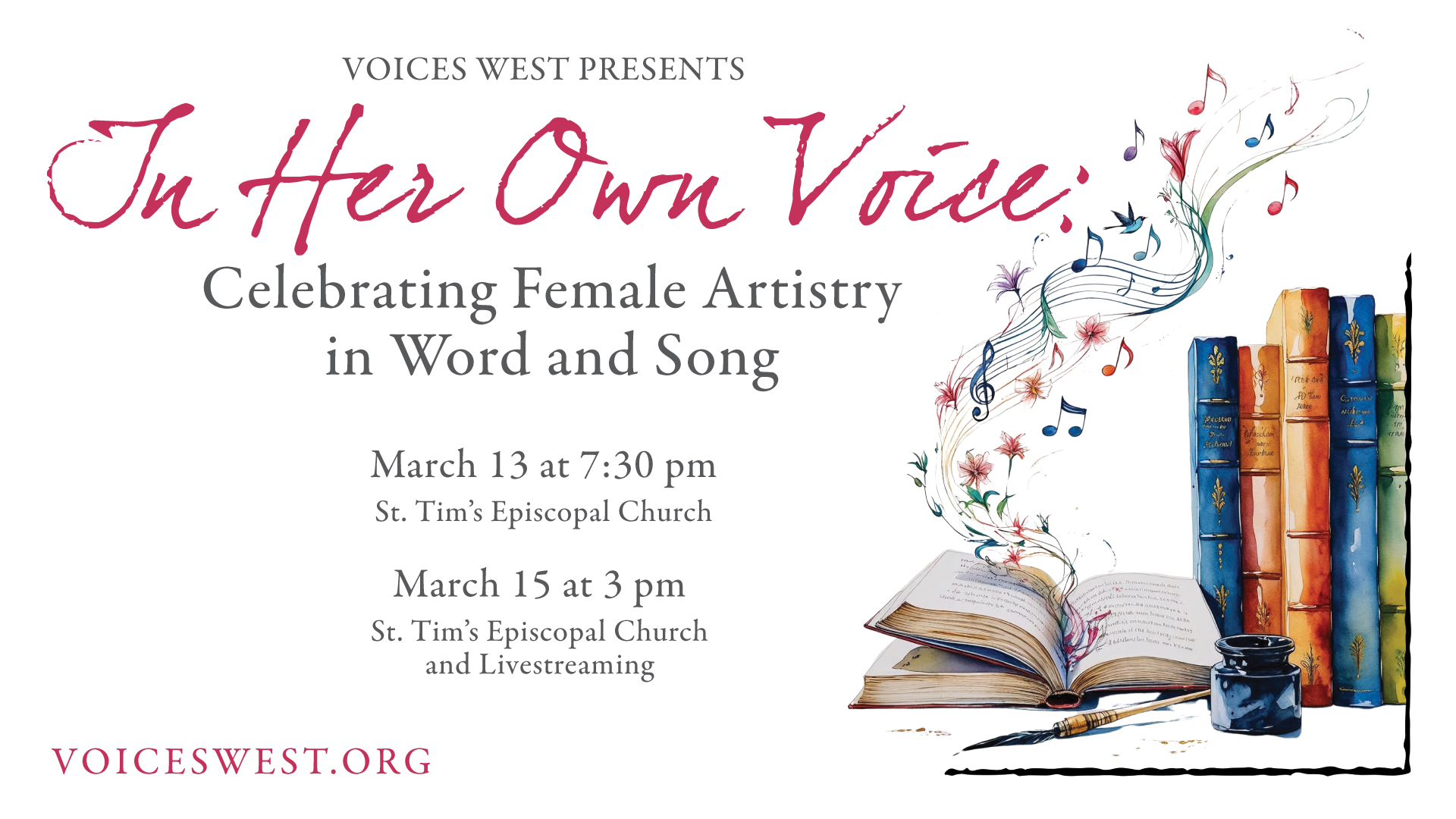 Voices West's 'In Her Own Voice: Celebrating Female Artistry in Word & Song' Performances: