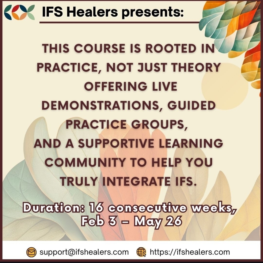 Embrace IFS as a practice of inner and outer peace, one that nurtures healing within yourself, your clients, and the communities you serve.