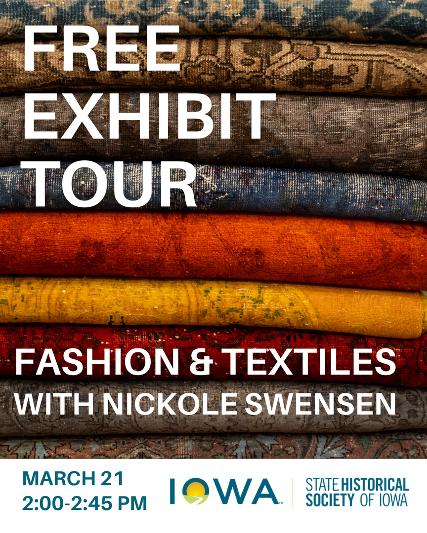 Fashion and textiles play a significant role in Iowa's history. Join us at the State Historical Museum to explore clothing and meaningful cloth throughout the museum's collection. In this special guided exhibit tour, participants will learn the fascinating and interesting history of some of the clothing and textiles on display.