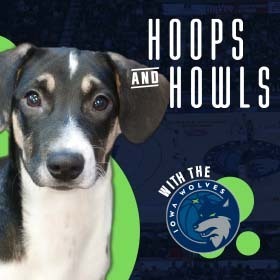 Join us at Casey’s Center to watch the Iowa Wolves take on the Salt Lake City Stars! Enjoy a thrilling basketball game with your pup by your side. During the game, stop by the ARL table to enter to win awesome raffle prizes and meet ARL adoptables. PLUS – keep an eye on the jumbotron for our “Smooch Your Pooch” graphic!
