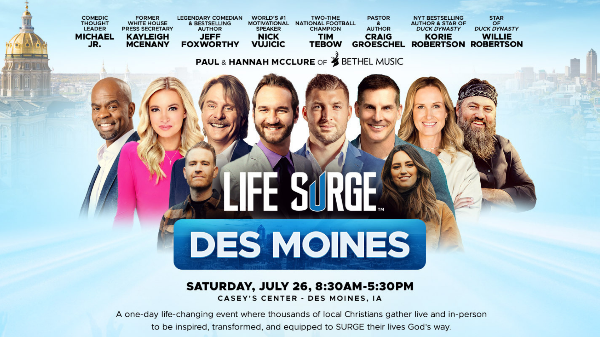 Featuring Two-Time National Football Champion, Tim Tebow; Legendary Comedian & Bestselling Author Jeff Foxworthy; the World’s #1 Motivational Speaker, Nick Vujicic; Pastor & Author, Craig Groeschel; Entrepreneur, Comedic Thought Leader, Michael Jr.; Former White House Press Secretary, Kayleigh McEnany; Stars of Duck Dynasty Willie & Korie Robertson; Motivational Speakers, Authors and Entrepreneurs, The Benham Brothers; 11-time Dove Award-winning and GRAMMY® Nominated Christian Worship Collective Bethel Music; and Many More!