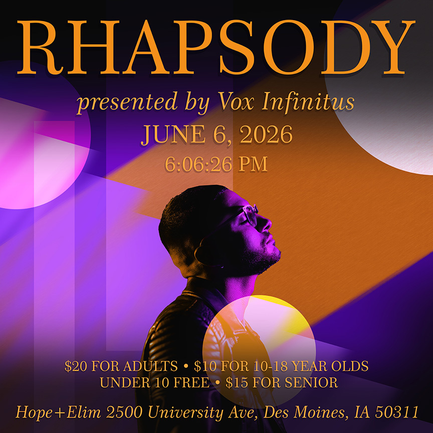 Vox Infinitus introduces "Rhapsody," a soulful musical journey and an unforgettable evening. Featuring special guests Remedy, 3 Souls, and Tapestry, we celebrate the start of summer 2026 with top-notch acapella performances. Join us in our passion for singing and witness the voice's limitless ability to illuminate a world that can occasionally feel so dark.