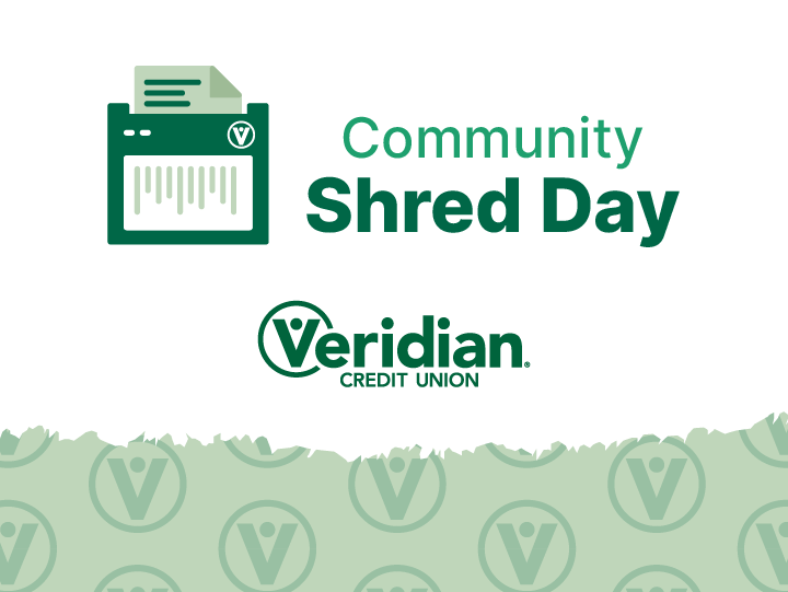 Shred it up! Join Veridian Credit Union for Community Shred Day. Community members are invited to help protect their identity by safely destroying unwanted, sensitive documents for free.Documents recommended for shredding include anything that contains your identifying information, such as old checkbooks, credit card offers, account statements, etc. Shredding services are provided by Shred-it.