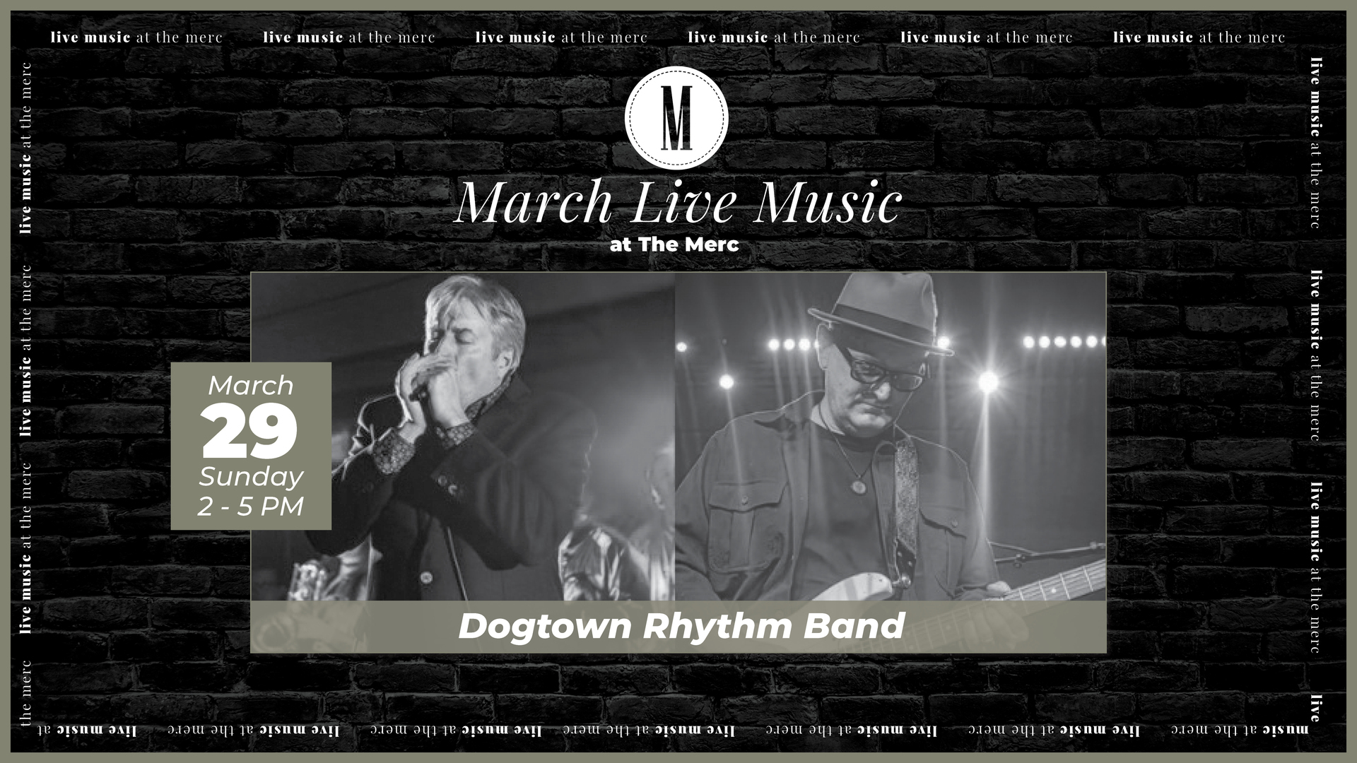 Join us Sunday, March 29 from 2:00 PM – 5:00 PM at Middlebrook Mercantile for an afternoon of live music with Dogtown Rhythm Band!