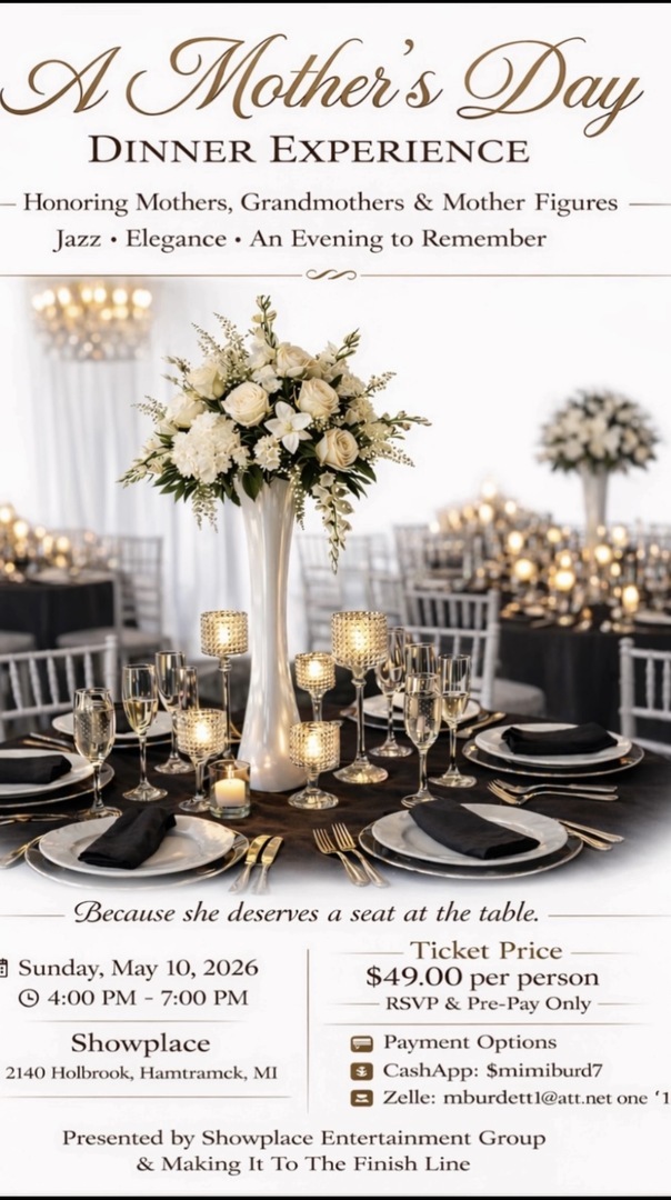 Join us for an elegant evening filled with delicious food, great music, and a warm, welcoming atmosphere where mothers can relax, feel appreciated, and truly enjoy their day.