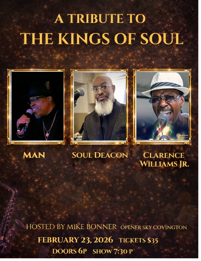 Detroit, MI — The Preservation of Jazz Monday Night Music Series proudly presents a powerhouse evening honoring the iconic voices and songs that shaped generations. The Kings of Soul: Legendary Songs of Our Time brings together three extraordinary Detroit artists—Clarence Williams, Man, and Soul Deacon—for a night of timeless tribute, electrifying musicianship, and pure soul magic.