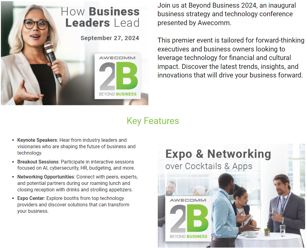 Beyond Business 2024, presented by Awecomm, is more than just a conference; it's a catalyst for change. Set just north of Detroit, this event brings together high-level executives and business owners from the small and mid-sized market to explore the intersection of business strategy and technology.