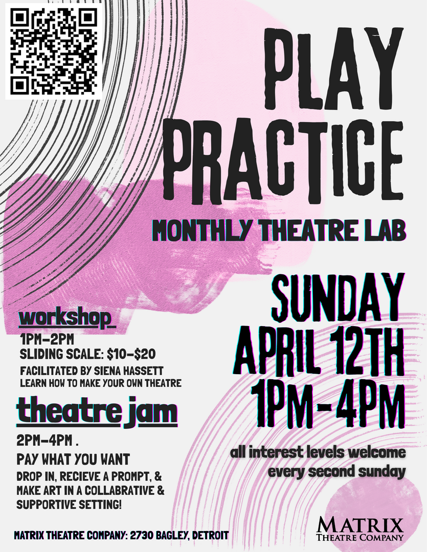 All workshops and open labs are in person and will be held at Matrix Theatre located at 2730 Bagley St, Detroit, MI 48216.