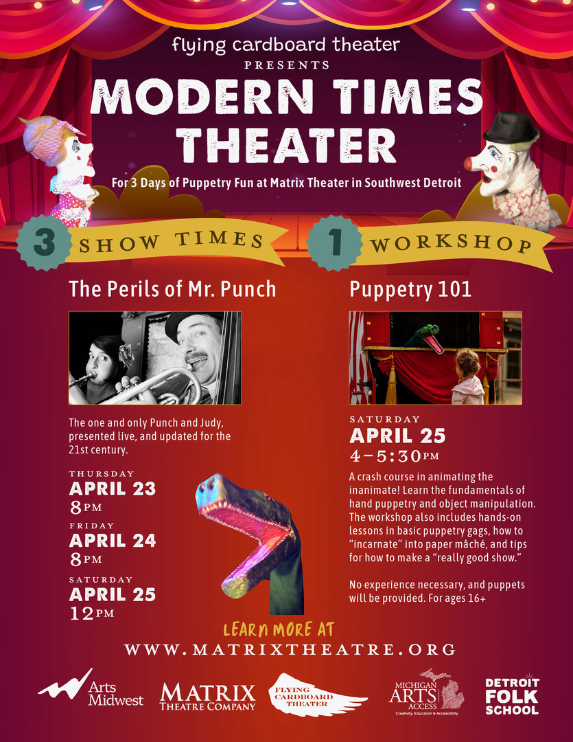 This event is in collaboration with Arts Midwest, Matrix Theatre Company, Flying Cardboard Theater, Michigan Arts Access and Detroit Folk School.