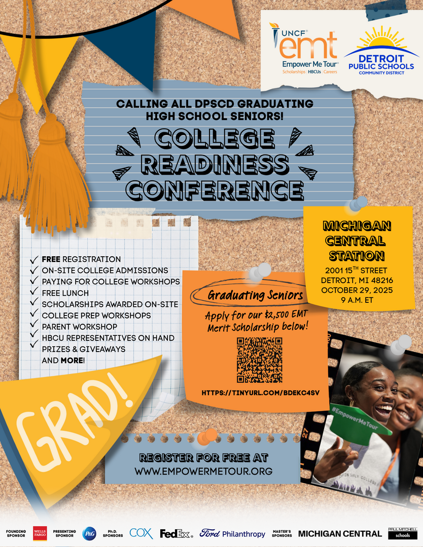 This year’s Empower Me Tour is kicking off in Detroit, MI and is expected to be bigger and better than ever with over 500 graduating seniors expected to attend. You can expect on-site college admissions, college prep workshops, scholarships available on-site, numerous HBCU representatives on hand, and more. The 2025 Detroit College Readiness Fair will take place at the Michigan Central Station on Wednesday, Oct. 29th from 9:00 a.m. to 2:00 pm.