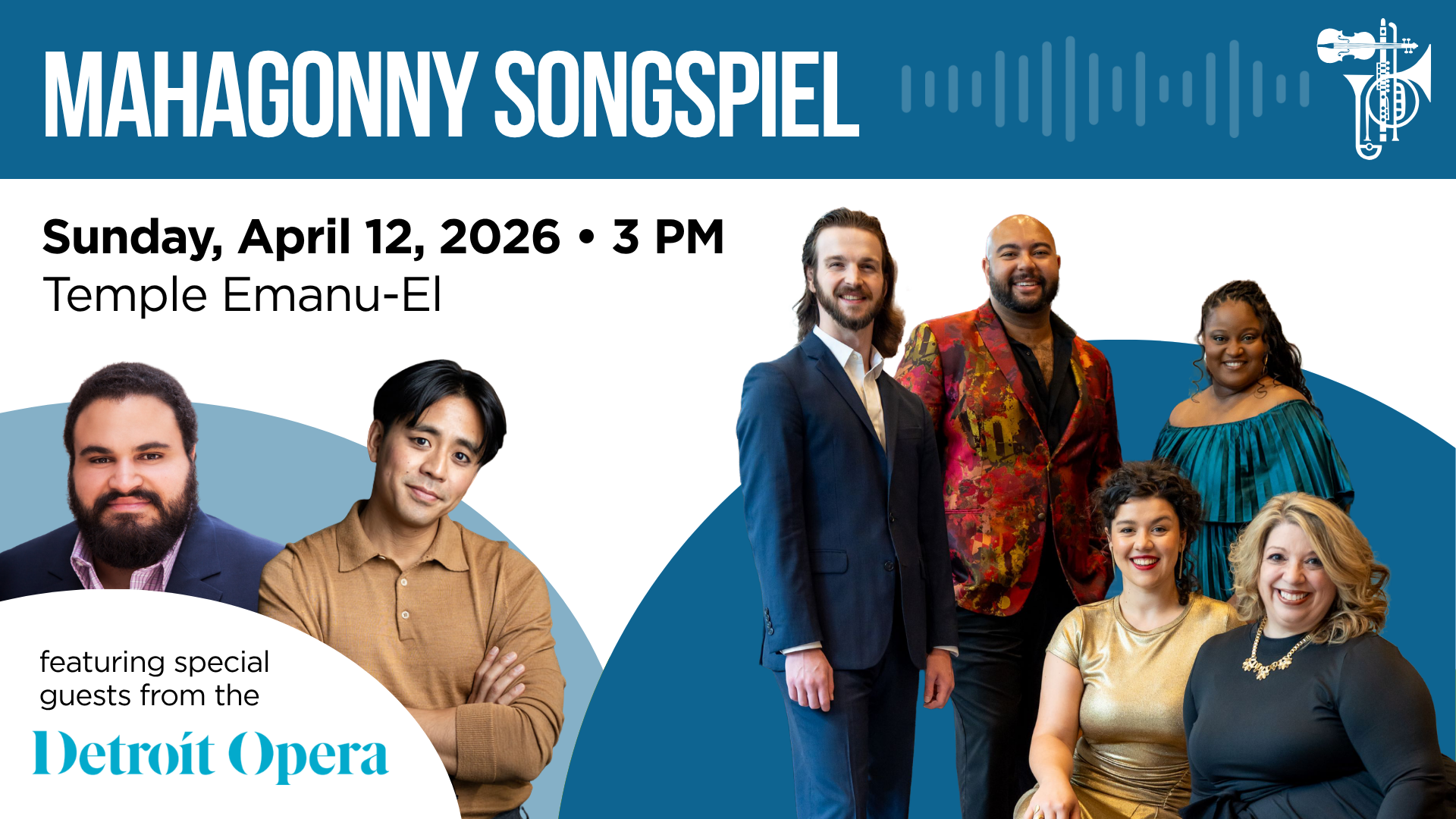 Under the baton of Timothy Weiss, DCWS reunites with the Detroit Opera Resident Artists for a performance of Kurt Weill’s Mahagonny Songspiel and Maurice Ravel’s Deux mélodies hébraïques (“Two Hebrew Songs”).