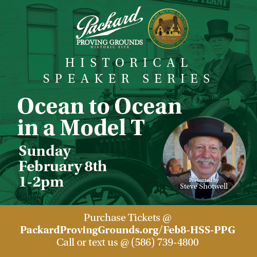 Join us Sunday, February 8th, 1–2 p.m., at the Packard Proving Grounds Historic Site. Tickets are $5 for non-members and free for members. Visit PackardProvingGrounds.org/Feb8-HSS-PPG