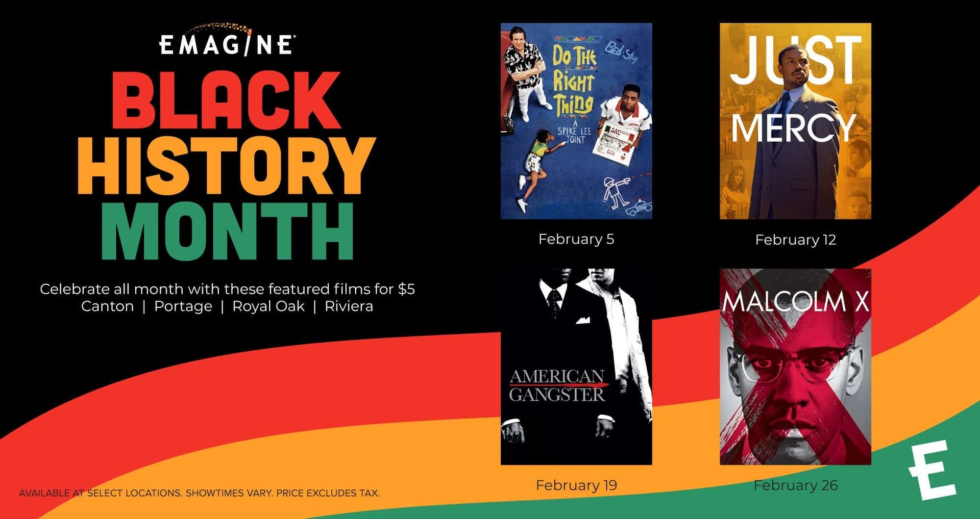 Emagine Entertainment invites you to visit select Emagine locations to Celebrate Black History Month. Throughout the month of February, Emagine will be showing a variety of African American influenced films for only $5. These films showcase some of the most influential black entertainers in modern history.