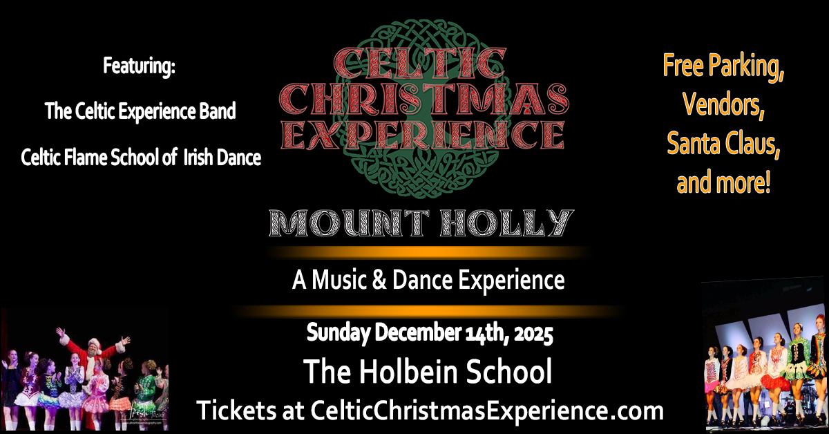 The producers of The Philadelphia Fleadh are proud to bring you 'Celtic Christmas Experience - Mt. Holly' which will be held on Sunday, December 14, 2025, at the Holbein School in Mt. Holly NJ. The Celtic Christmas Experience is in its 13th year of performances, and in the past three years has turned it from a one day event into a tour. This is the second year they are bringing this music and dance experience to Mt. Holly. This incredible performance will take place from 3pm to 5:30pm with a short intermission. Celtic Christmas Experience Mt. Holly combines live music with traditional Irish and lyrical dance for a fun filled family event. Described as a combination of Transiberian Orchestra, Riverdance, and the Christmas Spectacular, this show is sure to be something you will not forget.