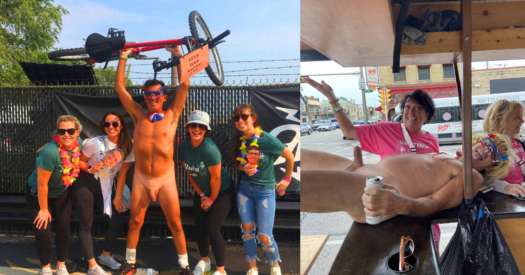 Dear friends We are so excited to announce the date for this years ride! Please stay tuned for more details. In the meantime be you get vaccinated and ride safe! ABOUT THE WNBR Celebrating bicycle power and the beauty of people World Naked Bike Ride (WNBR) is an international clothing-optional people powered event that highlights the vulnerability of cyclists everywhere decries society’s dependence on pollution-based transport and promotes positive body image. It’s also just a lot of fun! The event is bare-as-you-dare; anything from body paint to underwear to fanciful costumes are encouraged. Due to legal restrictions full frontal nudity is at your own risk but many participants do go all out. Large-scale body painting is typically available pre-ride and personal expression is encouraged. past events drew over 2000 riders and covered over ten miles of high visibility city areas. Blessed by decent summer weather in a great cycling city the event has grown into a fantastic rolling celebration complete with a massive afterparty. Participants often describe it as a transcendent group experience personally transforming and beyond superlativ