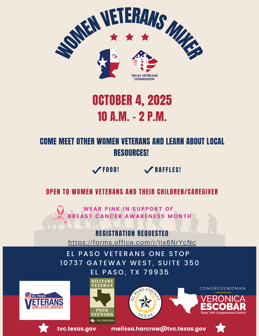 Location is the El Paso Veterans One Stop at 10737 Gateway West, Suite 350, El Paso, TX 79935