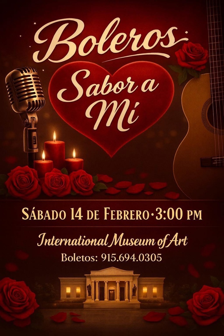 Boleros: Sabor a Mi es un concierto romántico interpretado por Arturo Guerrero, donde los grandes clásicos del bolero cobran vida en una tarde especial para celebrar el amor. Disfrute canciones como Sabor a Mí y Bésame Mucho en un ambiente íntimo dentro del International Museum of Art.