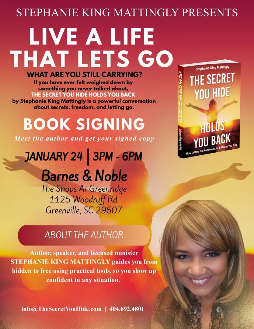 During Mental Wellness Month this January, local author Stephanie King Mattingly invites the community to a book signing for The Secret You Hide Holds You Back: How Letting Go Sweetens Life & Makes You Free.